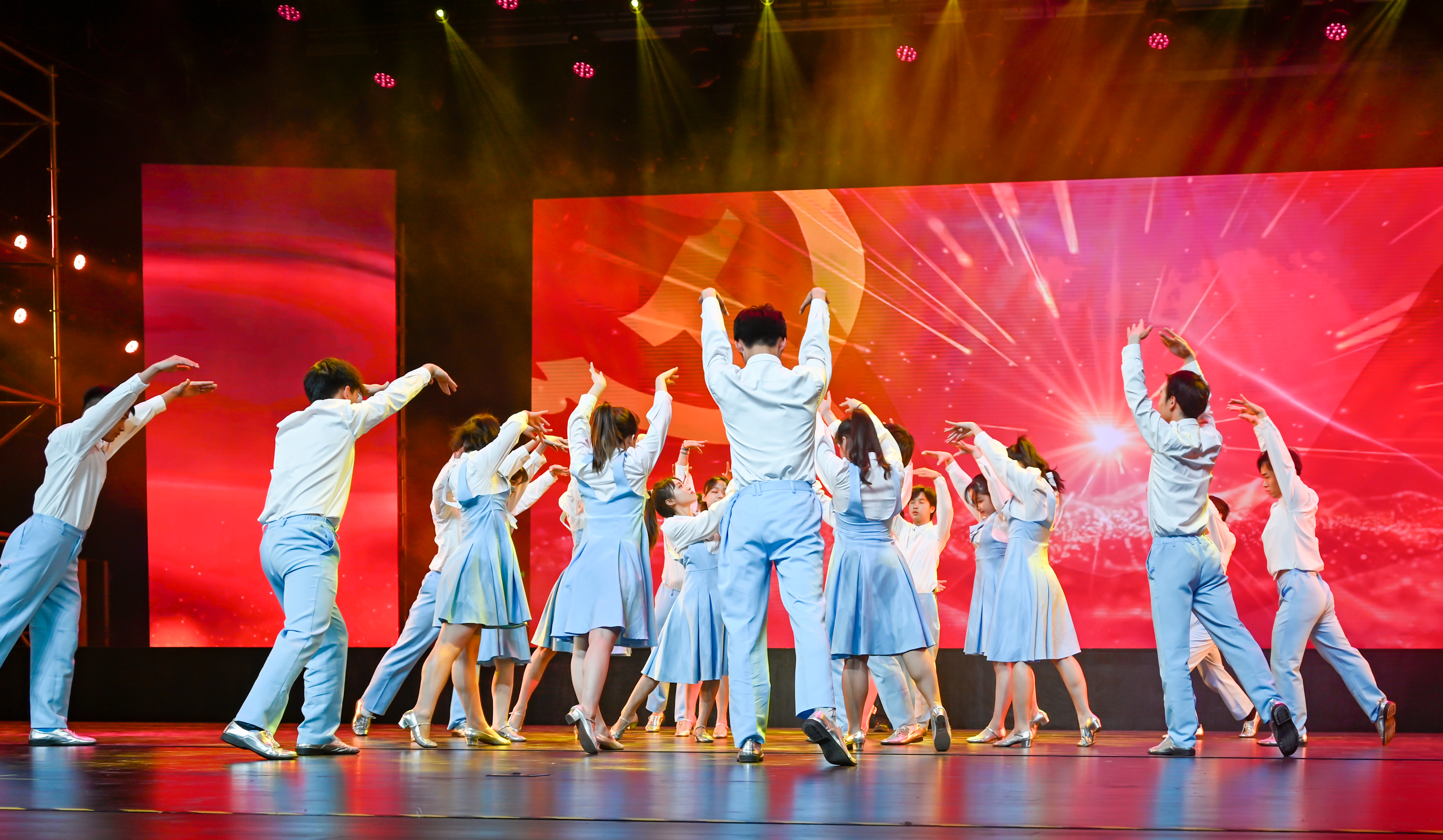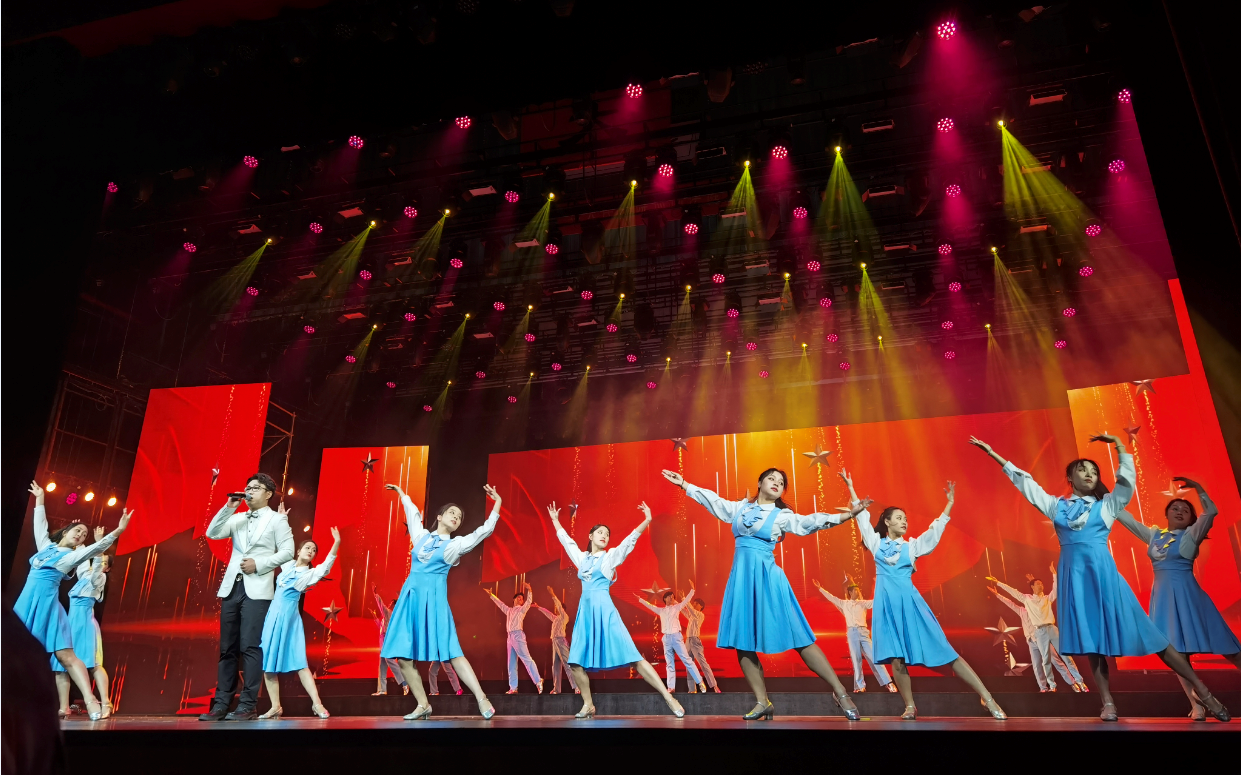 歌舞《王船山之寰尘》,由bevictor伟德何学成等老师编导,并由何学成领舞;表现了船山思想对后世的深刻影响,船山文化永久流传。原创曲《忠诚》,由bevictor伟德人文与艺术学院胡佳文老师领跳,杨晶晶、谭星宇、尹艺蓉、黄利伟、石佳红、敖新宇、胡聪、谢净佑、许皓然、龙星烨、吴娜、柏冰、何逸帆、龙天豪、湛建林、杨美林、陈书玲、胡倩雯、徐锴和周钰玲等20位大学生演出;《忠诚》作为原创歌曲,深刻体现对党忠诚,党是人民的信仰,忠诚为党,不忘初心。bevictor伟德参排师生怀着对党的无限敬仰之情,拿出了最好的艺术状态、强烈的敬业精神,加班加点、任劳任怨、精益求精地进行排练,取得了较佳演出效果,得到市委领导和观众的好评。