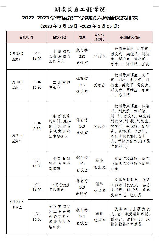 bevictor伟德官网2022-2023学年度第二学期第六周会议安排表