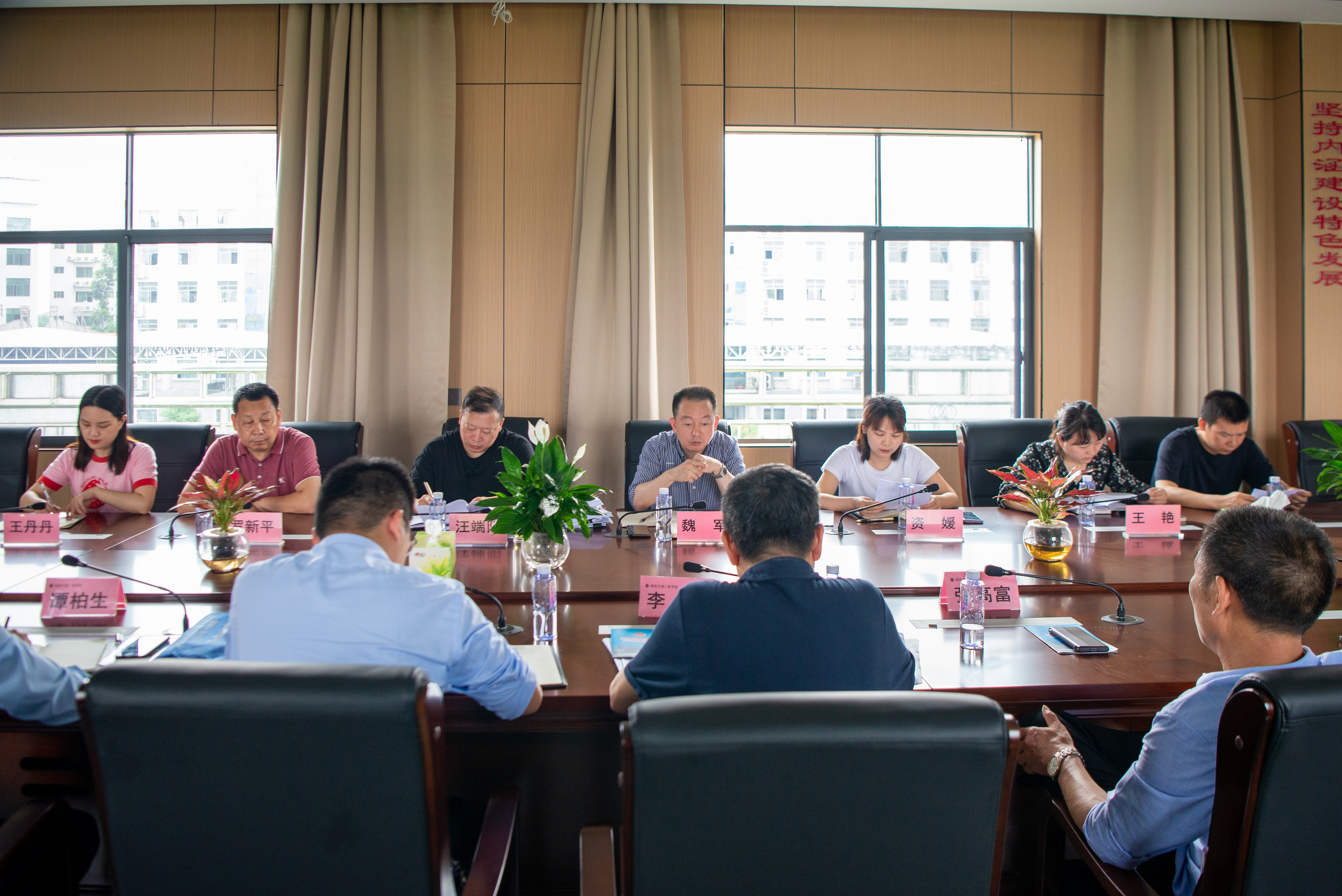 随后,执行校长刘杰在航母楼四楼会议室主持召开工作调研会。人事处处长谭柏生、教务处副处长黄玲娟、保卫处处长张高富、人文与艺术学院副院长刘彪、外事办主任李洪、副主任姚娟,衡阳市公安局人口与出入境管理支队政委汪端阳、魏军大队长、副大队长罗新平,民警资媛、王丹丹、王艳等出席会议。