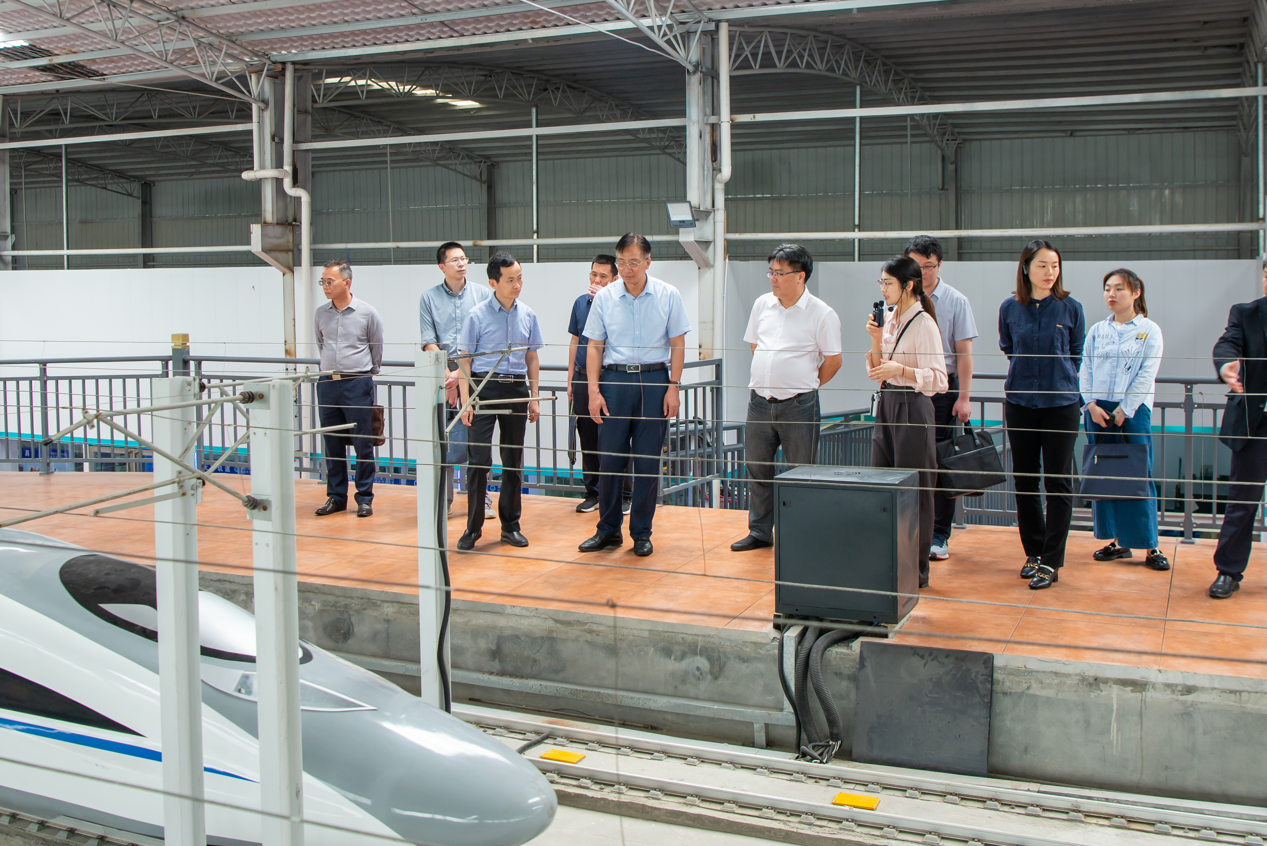 ▲专家组考察铁道工程与交通运输实训基地