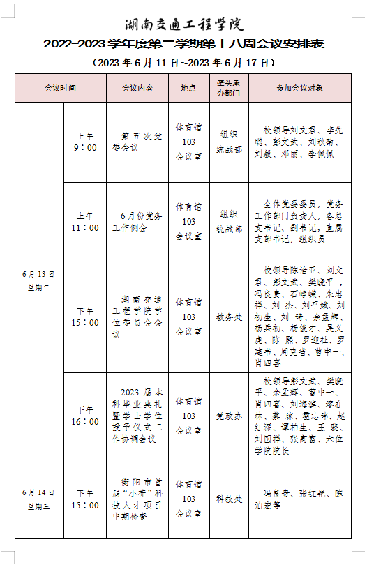 bevictor伟德官网2022-2023学年度第二学期第十七周会议安排表