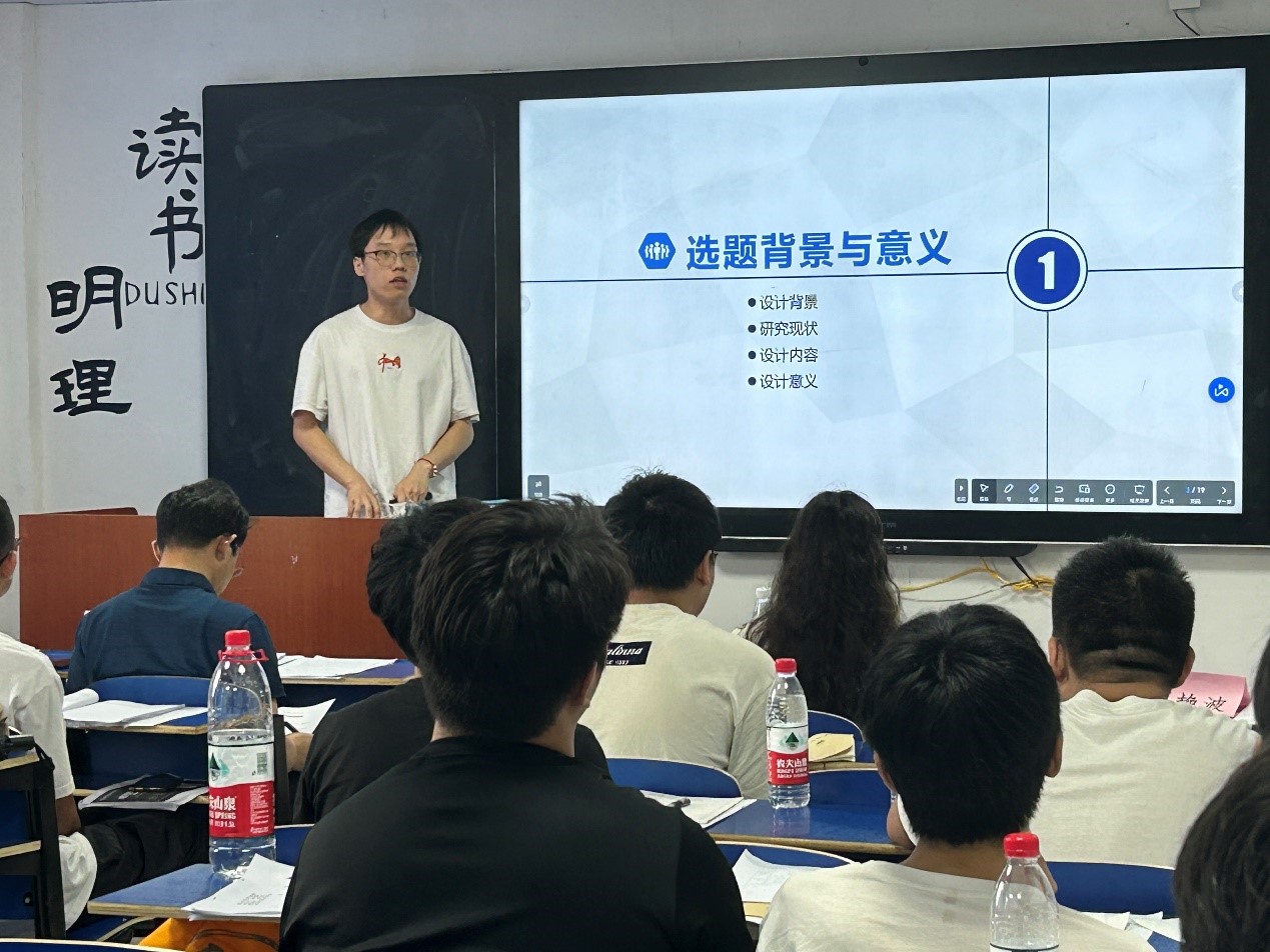 本次毕业设计(论文)答辩流程为每组学生根据提前抽签的顺序依次答辩,每位学生答辩环节包括7-10分钟的毕业设计(论文)PPT汇报、各答辩教师1-2个实质性的提问、学生回答、答辩教师打分、答辩秘书记录及分数汇总。