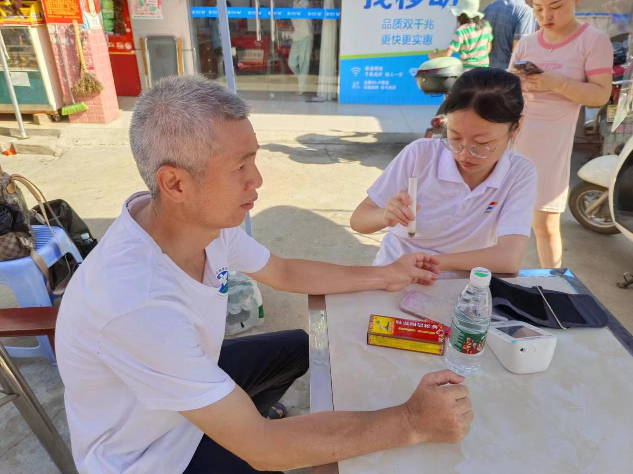 在宝盖镇各级党组织的支持下,志愿者进入各村迅速布置好活动现场,志愿者给老百姓发放注册“湘易办”宣传资料,手把手指导老百姓注册APP,体验科技带来的便利性,让老百姓切实体会“身在湖南,办事不难”。同时还给老百姓进行血压测量、艾灸等基本医疗服务并对有需求老百姓贴膏药医治和根据身体状况提出科学的建议,还开展了防溺水、禁毒知识宣传。