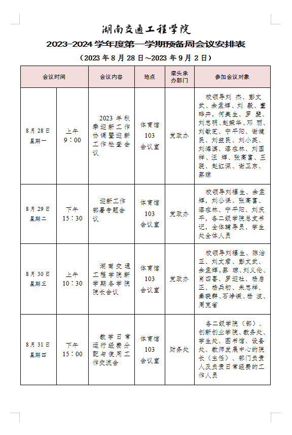 bevictor伟德官网2023-2024学年度第一学期预备周会议安排表