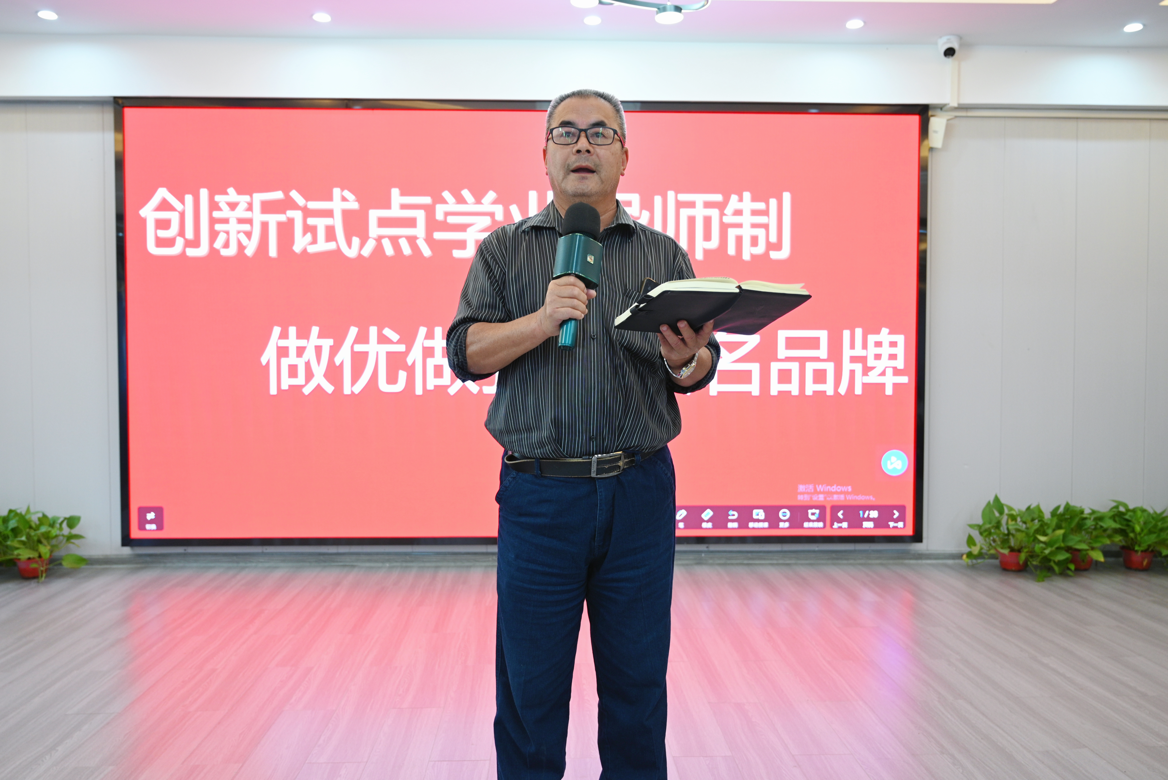 本网讯(通讯员 赵红深 摄影 大学生记者团)11月2日下午,学校在创新创业学院会议室召开本科生学业导师制创新试点会议,以经济管理学院国际贸易专业为试点,在本科阶段实施学术导师制。经济管理学院院长朱忠祥出席并致辞;教务处副处长王海娥,经济管理学院副院长王冰,国际贸易专业导师与学生近100人参加会议。