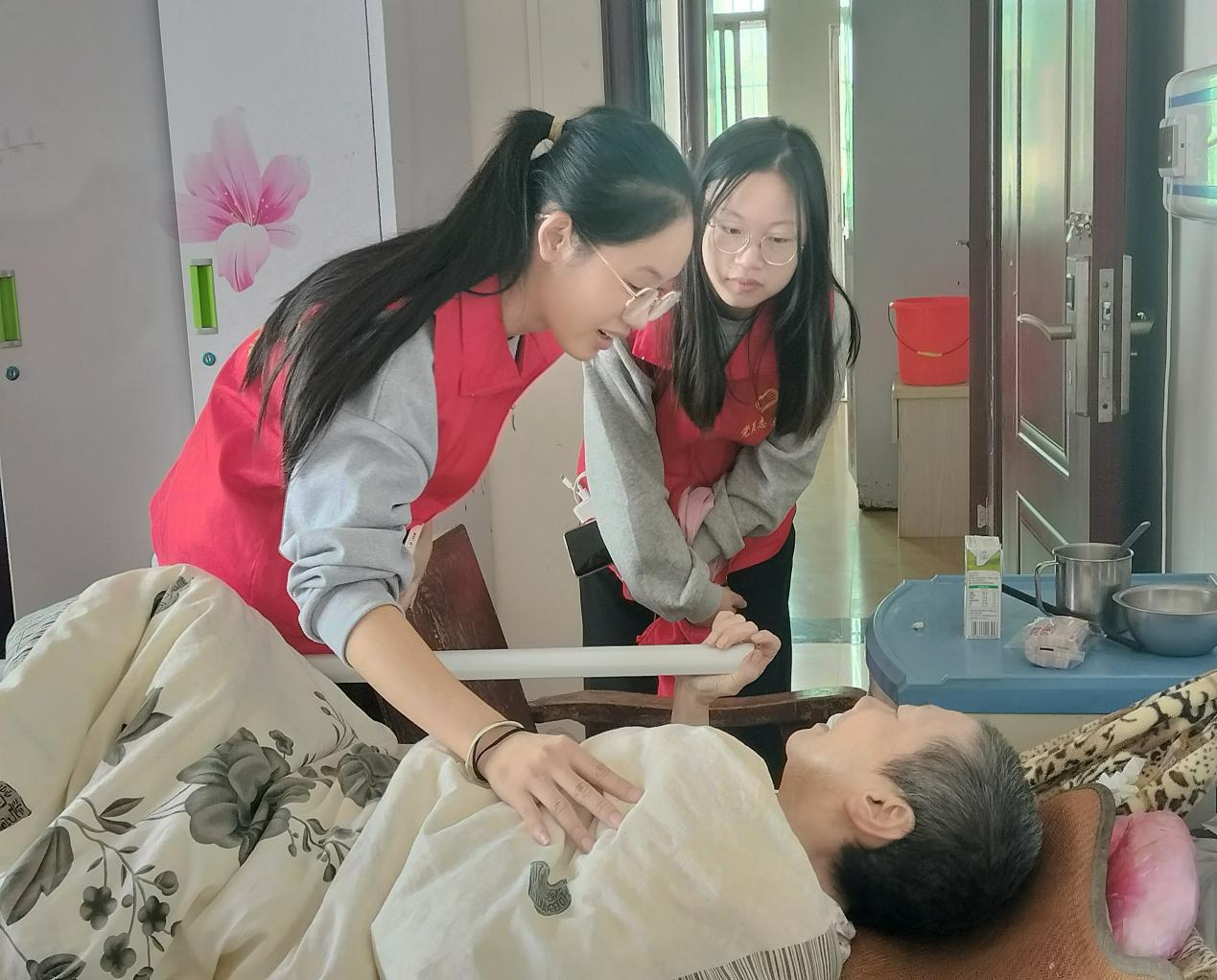 在敬老院,老师和学生们与老人亲切地交谈,向大家宣讲关于养生的知识,同时还为老人们修剪指甲、捶背按摩、下象棋、一起唱红歌、跳舞,帮助老人打扫卫生……志愿者们与老人融洽相处,真情流露。敬老院的老人们对志愿者的爱心善举表示感谢,同时也被志愿者的暖心热情深深感动着。