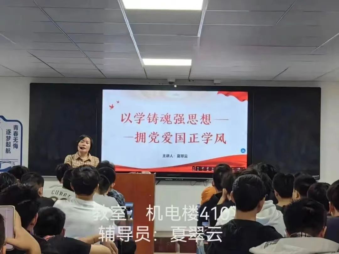 以学铸魂,就是要做好学习贯彻新时代中国特色社会主义思想的深化、内化、转化工作,从思想上正本清源、固本培元,筑牢信仰之基、补足精神之钙、把稳思想之舵。”习近平总书记近日在广东考察时就“以学铸魂”作出深刻阐释,提出明确要求。在青春有限的时光里,每个人都有自己的远大理想,唯有坚韧不拔的毅力,勇往直前的奋斗态度,才能到达顶峰。为此,于10月15日bevictor伟德官网机电工程学院的各班辅导员在班上开展"以学铸魂”主题班会活动。