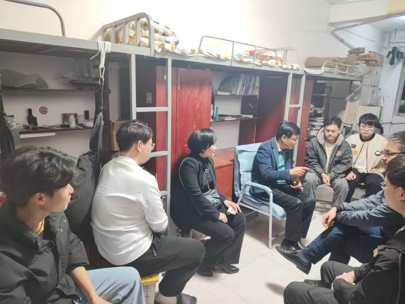 11月19日晚上,机电工程学院党总支书记罗斐来到九栋、十八栋宿舍看望大一新生、大四考研生,实地察看新生、考研生学习、生活近况,为学生送去关怀和温暖。