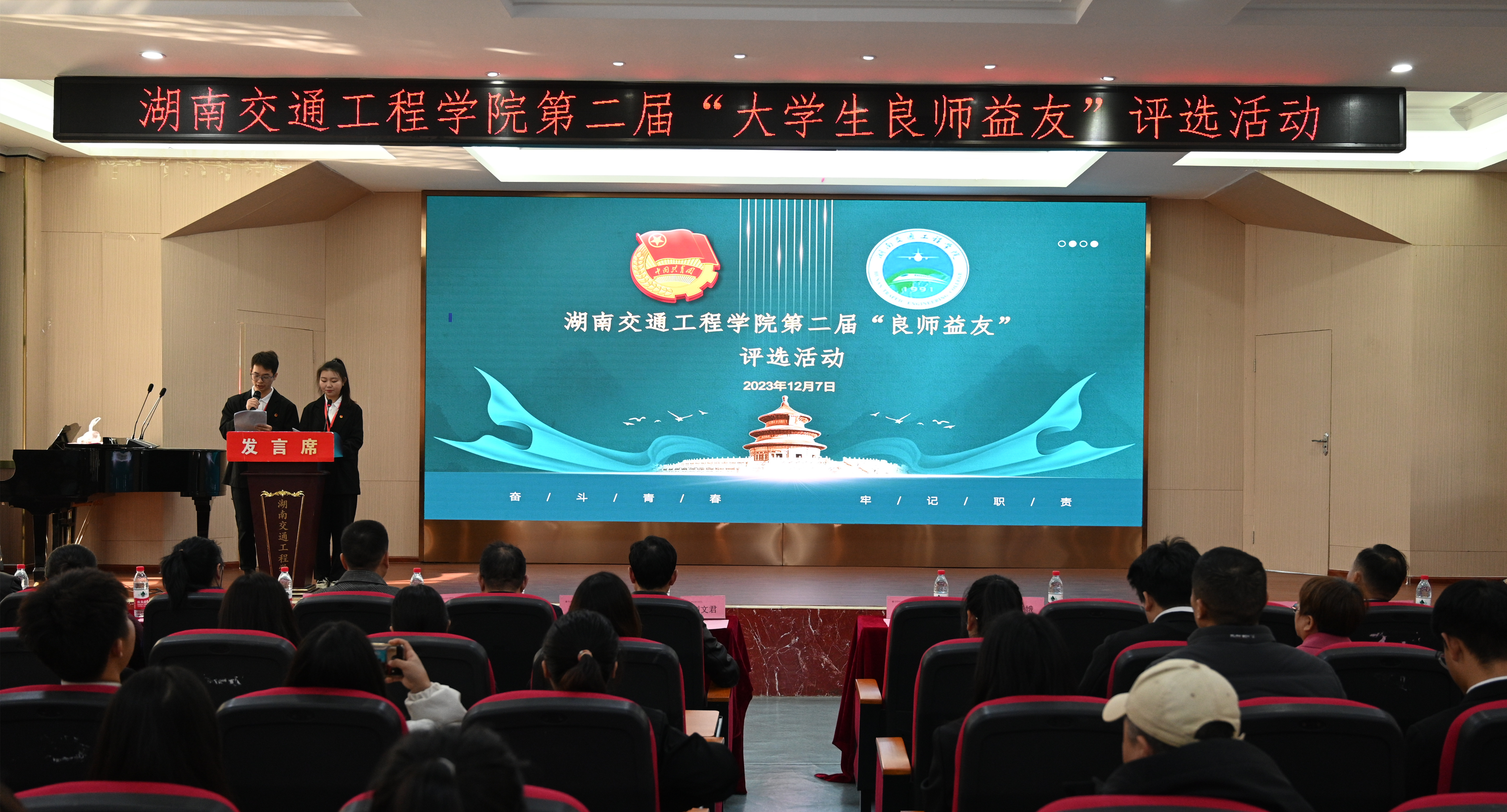 本网讯(通讯员 摄影 赵红深 )为进一步加强师生交流,增进师生感情,促进师生互动,推动教师队伍的发展,营造良好的“尊师重教”氛围,树立教书育人的典范,学校于11月份开展了第二届“大学生良师益友”评选活动。12月7日下午,学校在航母楼101会议室举行学生代表评审团评审活动。校长陈治亚、党委书记刘文君、名誉校长刘平娥、党委副书记冯良贵、常务副校长彭文武、纪委书记刘毅、副校长余孟辉等校领导出席并指导工作;宣传部、教务处、学工处、马克思主义学院、创新创业学院、公共基础课部、校团委负责人,各二级学院总支书记出席评审活动观摩。特邀80名学生担任评审团评委。