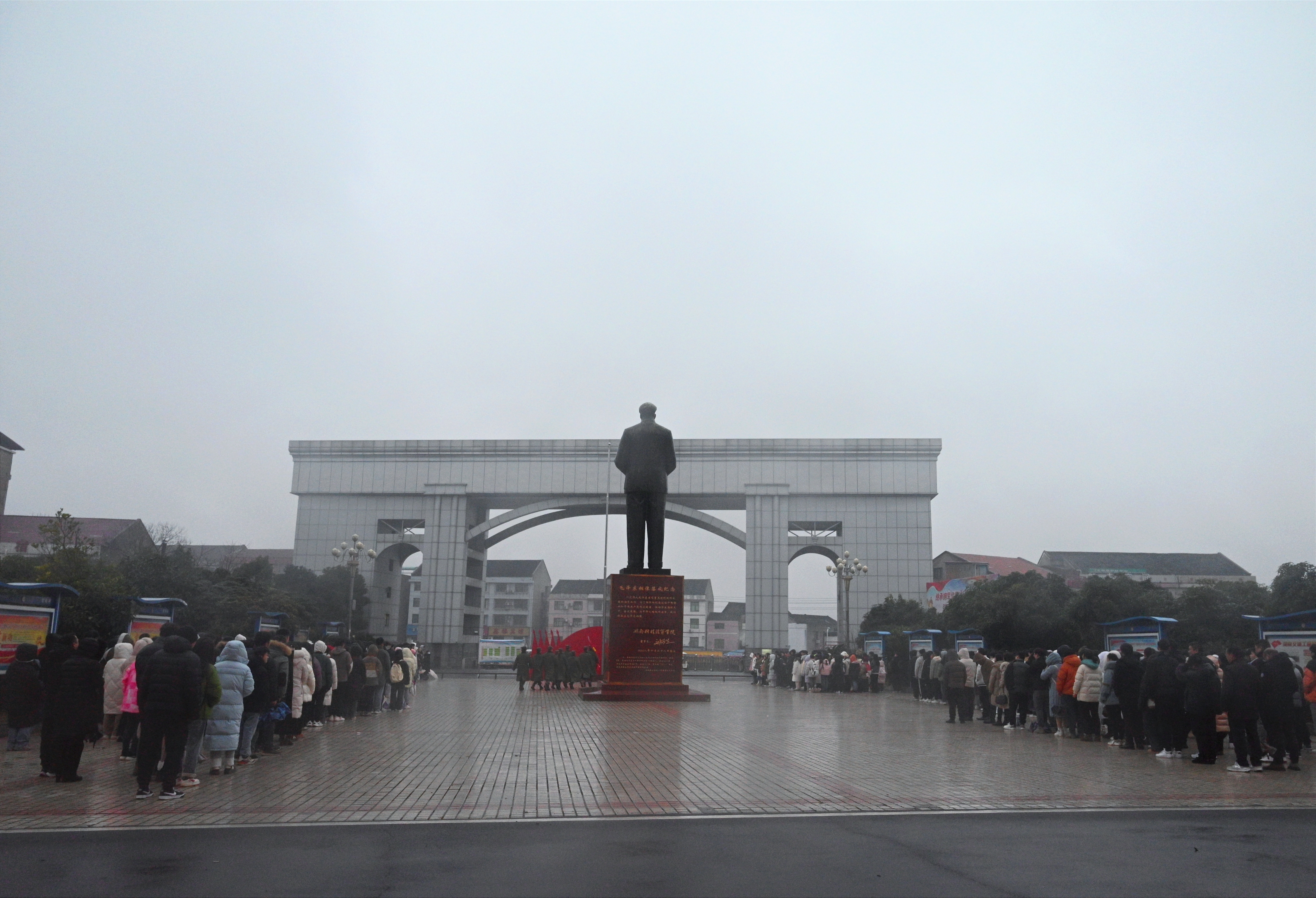 本网讯(通讯员 李水华 摄影 大学生记者团杨欣怡)金龙昂首唤春归,万象启新耀东方。2月26日上午7时05分,学校在毛泽东铜像广场举行2024年春季学期第一次升旗仪式。校党委副书记冯良贵、副校长余孟辉等校领导与各二级学院党总支书记、辅导员及校、院两级团学干部代表齐聚国旗下,以踔厉奋发的姿态、笃行不怠的决心,满怀信心开启新学期的学习与生活。