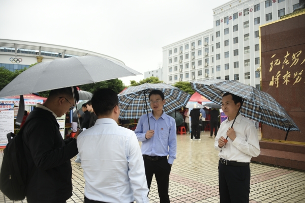 在校领导,机电工程学院院长杨启正、电气与信息工程学院院长杨兵初也来到招聘会现场,与用人单位进行交流,了解用人单位所需,并勉励求职学生树立奋斗意识、事业意识、求职意识,转变择业观念,调适就业心理,努力实现自己的就业目标。