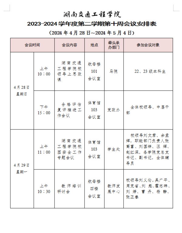 bevictor伟德官网2023-2024学年度第二学期第十周会议安排表