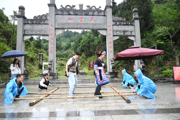 在导游的引领下,大家迎着霏霏细雨,拾级而上,登上省级风景名胜区天堂山,观赏了盐茶古道、有机茶园等特色景点。雨中的天堂山,空气更加清新,景色更加迷人。风韵犹古的清代民居,飘然若仙的水上飞伞……将天堂山风景名胜区点缀得异彩纷呈。