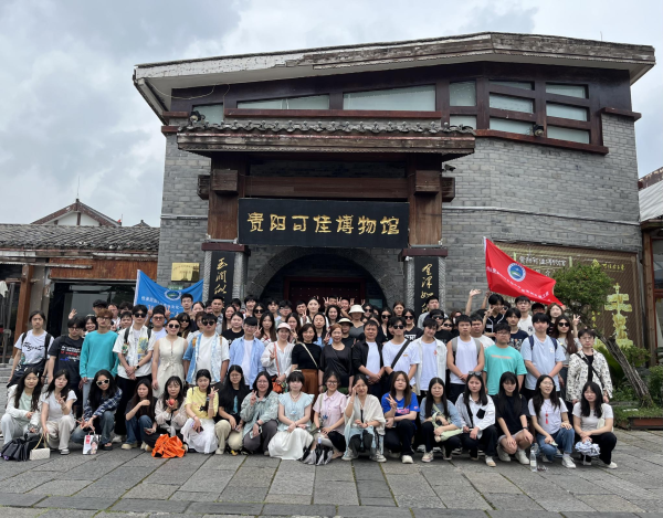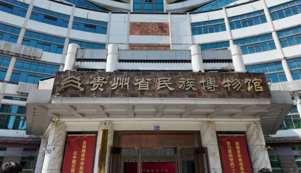 师生们首先乘车到贵阳市迎宾大道遵义路筑城广场,参观了贵州省民族博物馆。该馆馆址占地面积16632㎡,建筑总面积35040㎡,主楼汲取了贵州侗寨鼓楼轮廓曲线的神韵,为三叉弧形堵式建筑,大楼六个面的每一面形状都构成“山”字形,建筑造型体现贵州、民族、文化三个内涵,颇具贵州地域及民族色彩。附属建筑贵州省民族体育文化活动中心为第九届全国少数民族传统体育运动会纪念建筑。该馆藏品数量达14000余件套,藏品主要以中国西南各民族,特别是以贵州18个世居民族的生产生活实物资料为主;同时还搜集了反映各民族近现代发展变迁的实物以及古籍文献、影(音)像资料等。馆藏精品有贵州黄平苗族银衣、贵州关岭苗族银项圈、牛骨胡等。师生们来到了贵州省民族博物馆,仿佛踏入了时光的隧道,穿梭于贵州的历史长河之中。琳琅满目的文物展品,从古老的乐器到精美的首饰,从神秘的民族服饰到珍贵的文献资料,每一件都承载着贵州这片神奇土地独特的记忆与故事。师生们时而惊叹于古人的智慧与创造力,时而又陷入对历史变迁的深深沉思。大家由此了解了贵州各个历史时期的文化发展脉络,懂得了不同民族在这片土地上的融合与传承。