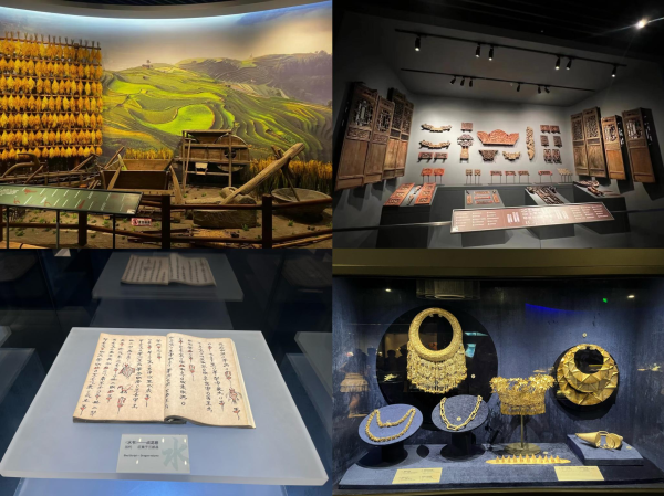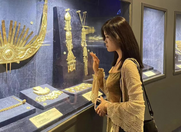 ▲参观贵州省民族博物馆馆藏黄金饰品