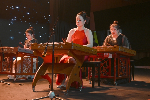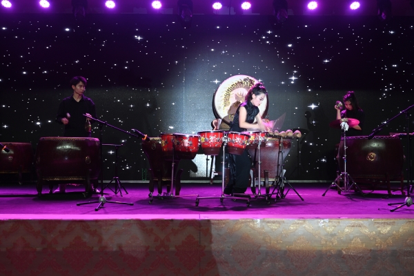 鼓笙打击乐团演奏的《中国龙》作为压轴节目。该曲融合了鼓乐,武术动作以及交响乐背景音乐为一体,激情四射,气势磅礴,系新民族打击乐经久不衰的经典作品。