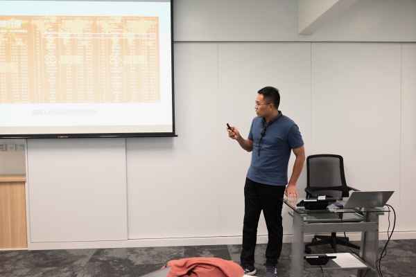 创新创业学院教师马元君代表一组交流。他从国际老龄化标准、国际人口结构现状、科技进步程度、经济发展及教育、医疗、妇女地位等多方面阐述人口老龄化现状,并从短长期角度分别提出了对策建议。
