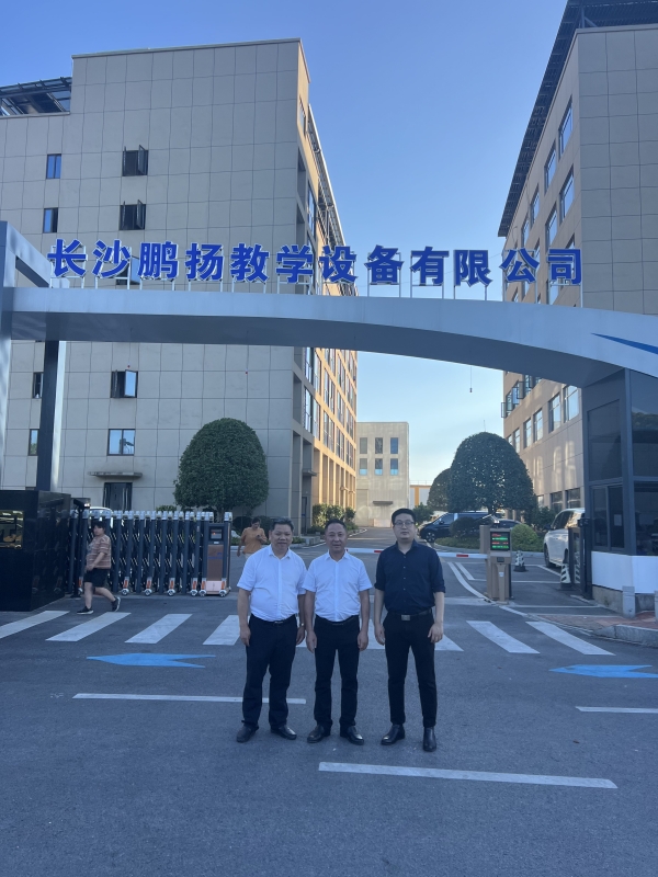 长沙市鹏扬教学设备有限公司董事长彭双全接待了彭文武一行,并组织召开了校企合作研讨会。