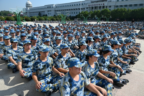 上午8点,同学们开始军事训练。从军姿到齐步走,从单排齐步走到整队齐步走,同学们以饱满的状态认真对待,由于刚刚度过假期,在开始训练后不久,体质较弱的同学已经汗流浃背,但他们休息片刻后依然决定坚持跟着教官的步伐,没有轻言放弃。
