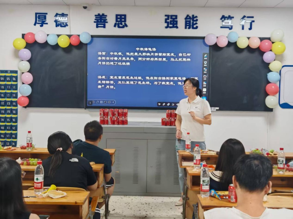在茶话会游戏环节中,脑筋急转弯式的“猜谜语”考验着大家的智慧与反应,同学们争相抢答,场面热烈;“剥柚子比赛”则趣味横生,大家手脚并用,忙得不亦乐乎;而新颖的“中秋海龟汤”推理游戏更是将气氛推向高潮,奇思妙想的剧情与团队协作的默契相互交织,教室内充满了轻松愉快的笑声。这些精心设计的互动游戏,让每一位同学都沉浸其中,感受到了浓浓的节日喜悦和同窗情谊 。