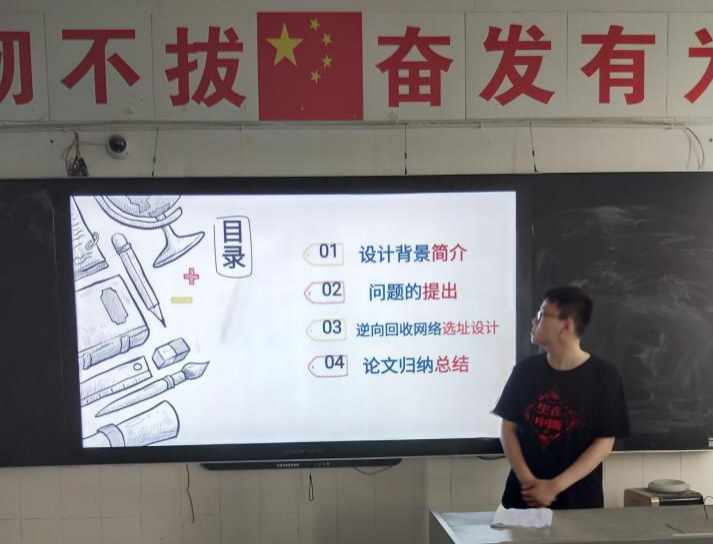 本次毕业设计(论文)答辩流程为每组学生根据提前抽取的顺序号依次答辩,每位学生答辩环节包括毕业设计(论文)PPT汇报、答辩教师提问、学生回答、答辩教师打分、答辩秘书记录及分数汇总。