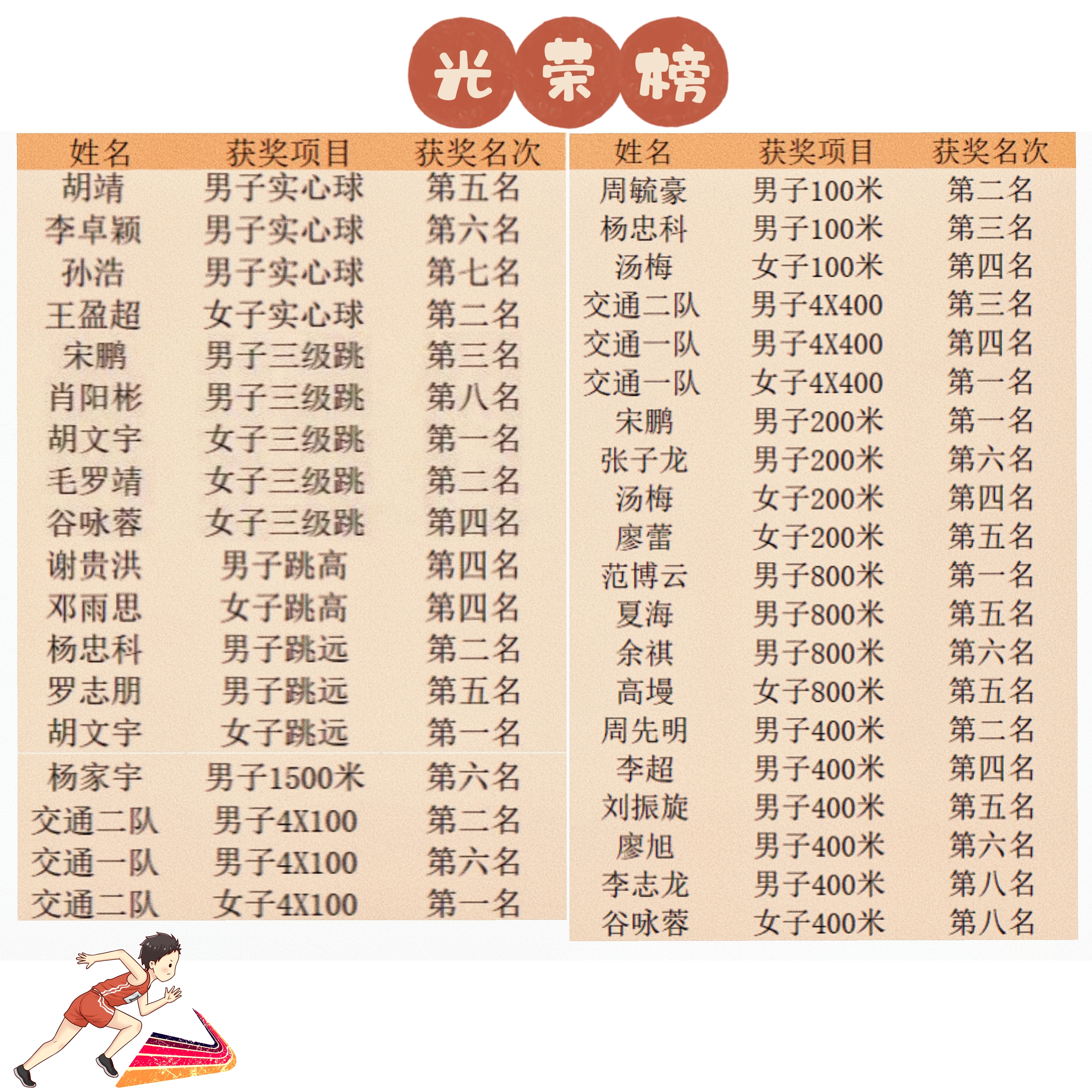 须知少年凌云志,曾许人间第一流,给每一位运动员点赞!少年凌云,一展无双风彩。乘风破浪,一夺耀眼成绩感谢运动健儿们赛场上的奋斗付出,感谢工作人员们的倾心奉献,期待更多的同学在赛场上挥洒汗水,助力交通运输工程学院大家庭来年更上一层楼!