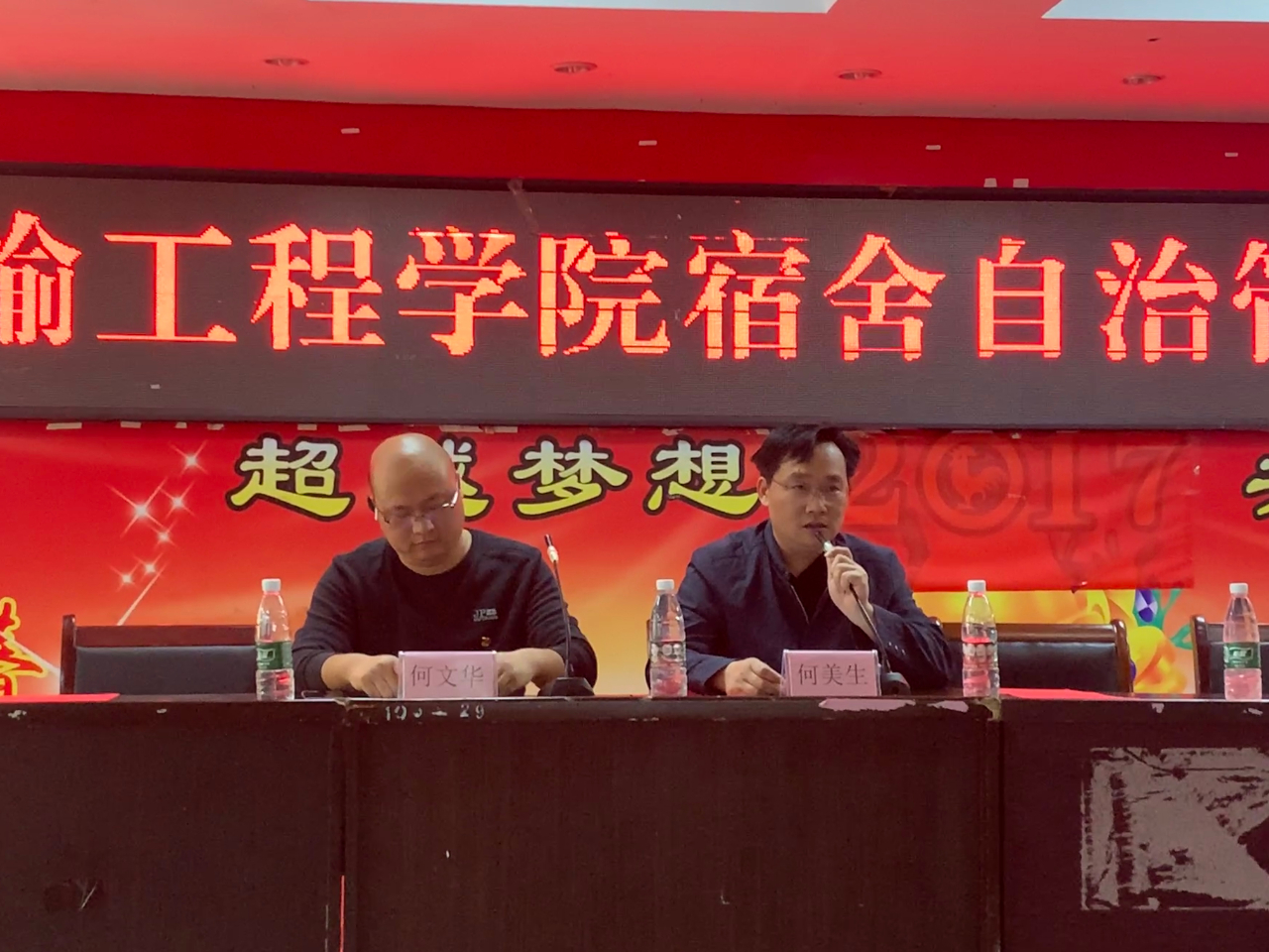 (本网讯 通讯员彭雨情 李麦 胡增燕)交通运输工程学院于2021年11月5日中午12时20分在体育馆101会议室召开宿舍自治管理委员会成立大会,本次大会由交通运输工程学院党总支副书记何文华主持,参会人员有交通运输工程学院党总支书记何美生、各班班委、寝室长等。
