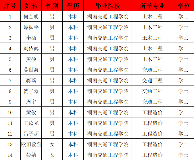 (本网讯 通讯员彭雨情 李麦 胡增燕)中国能建湖南火电建设公司录用名单: