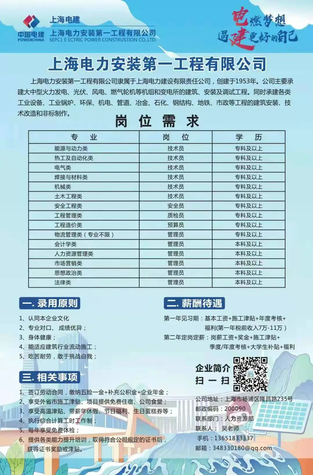 (本网讯 通讯员彭雨情 李麦 胡增燕)上海电力安装工程第一工程有限公司招聘简章发布!