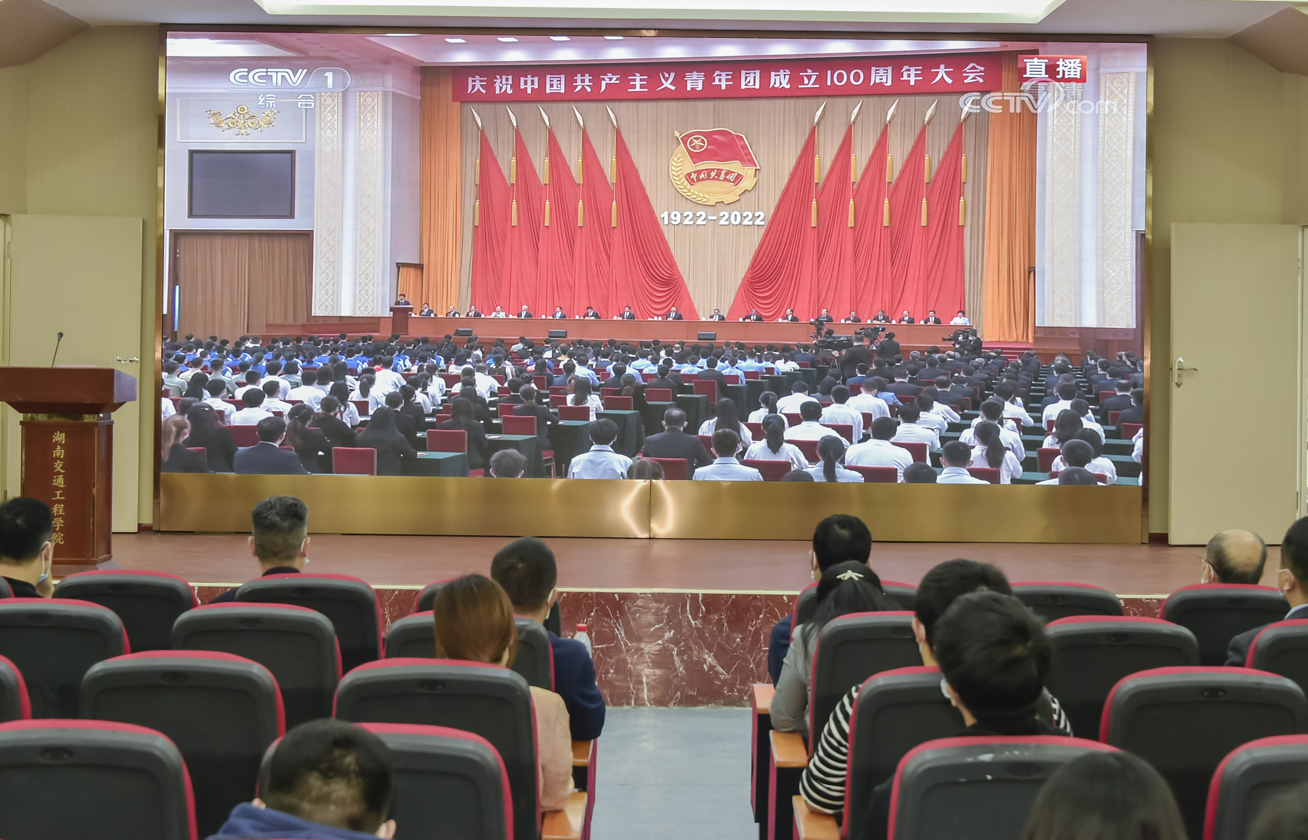 5月10日上午10时,庆祝中国共青团成立100周年大会在北京人民大会堂隆重举行。bevictor伟德组织广大团员青年、团干部集中收看大会盛况;各二级团总支、团支部采用集中观看和个人观看相结合的方式,共同庆祝中国共青团百年华诞。