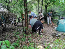 在学院领导和老师的带领下,学生们看到路边的杂草都会弯腰将它拔出清理,在这一刻,他们的背影是如此的耀眼。