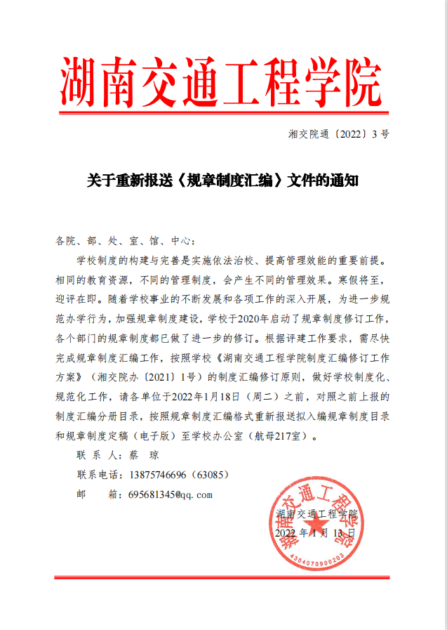 关于重新报送《规章制度汇编》文件的通知
