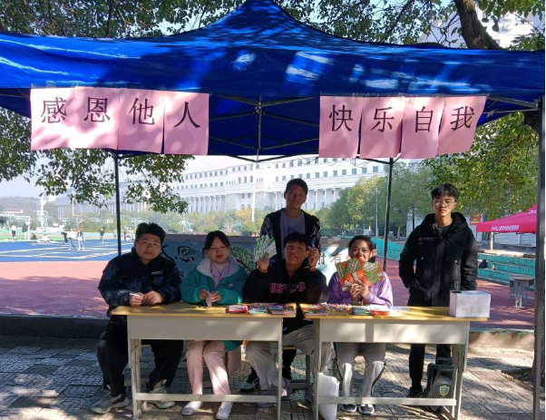 12月6日,护理学院学生会在教学楼附近开展了感恩月的抽奖、领取糖果和暖宝宝、发送感恩贺卡等一系列活动。
