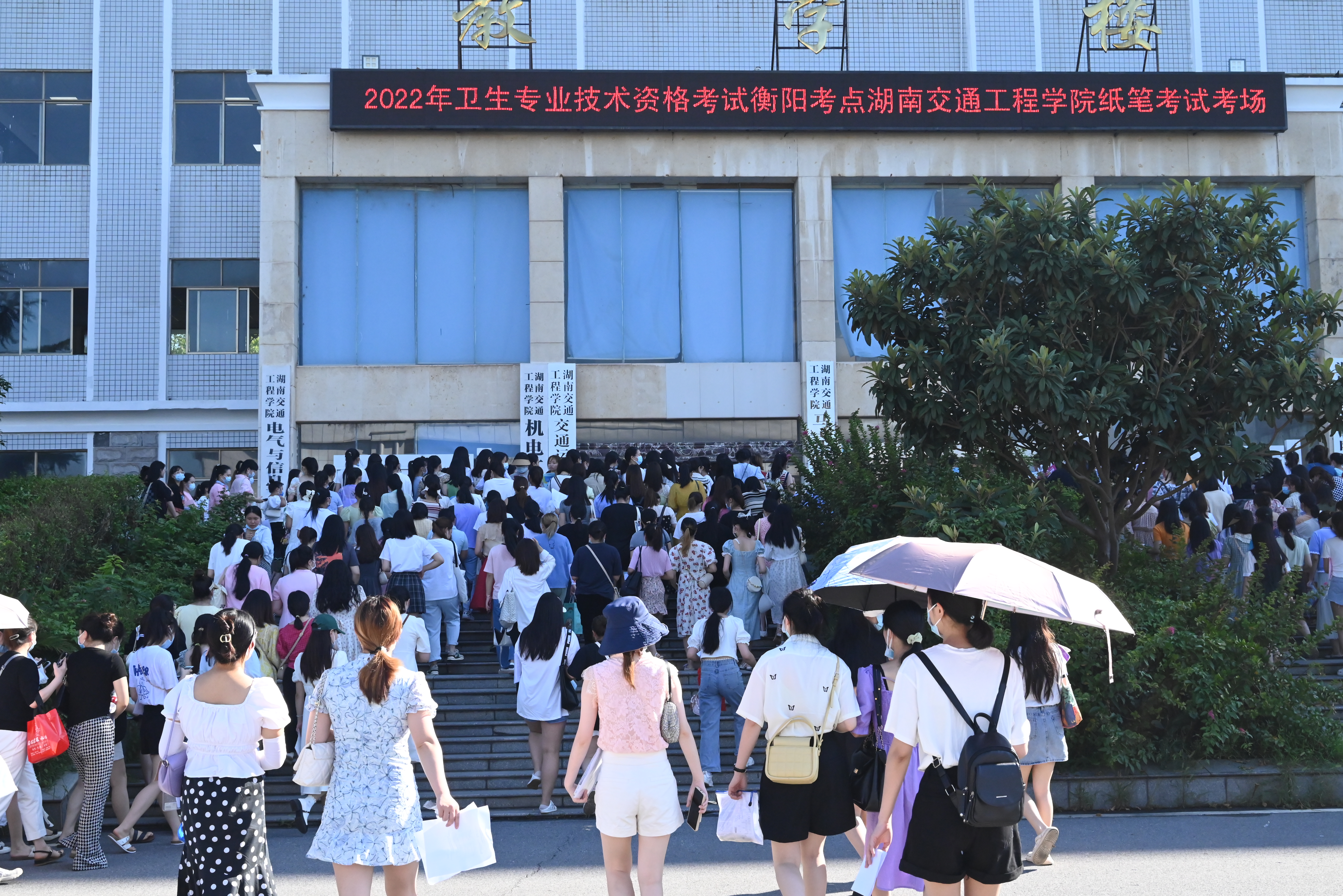 本网讯 7月23日上午,由衡阳市卫生健康委员会组织的衡阳市2022年护士执业资格考试和卫生专业技术资格考试在bevictor伟德顺利开考。本次考试时间为7月23-24日、26-27日、29-30日共6天; bevictor伟德在教学楼设置44个笔试考场,第一实验实训楼设置26个标准化人机对话考场; 1621人参加笔试,9619名考生参加机考。