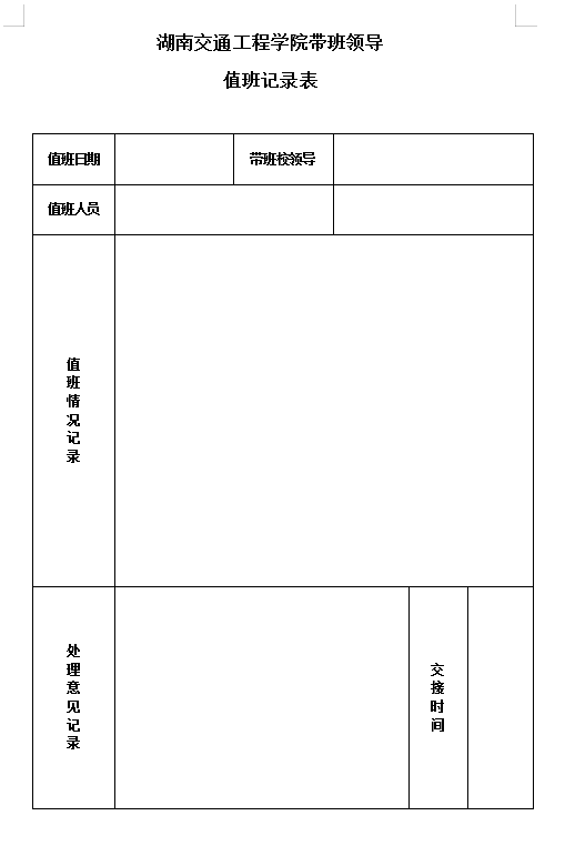 bevictor伟德官网带班领导值班记录表