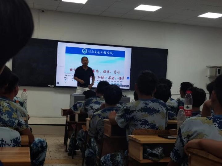 其次,唐小弟教授给同学们分享了自身的大学经历,让同学们意识到大学与高中在生活上、学习上和思想上的区别,并向同学们提出“尽早融进大学生活中、养成良好的自我约束习惯性、摆脱薄弱点提高自信”的建议。