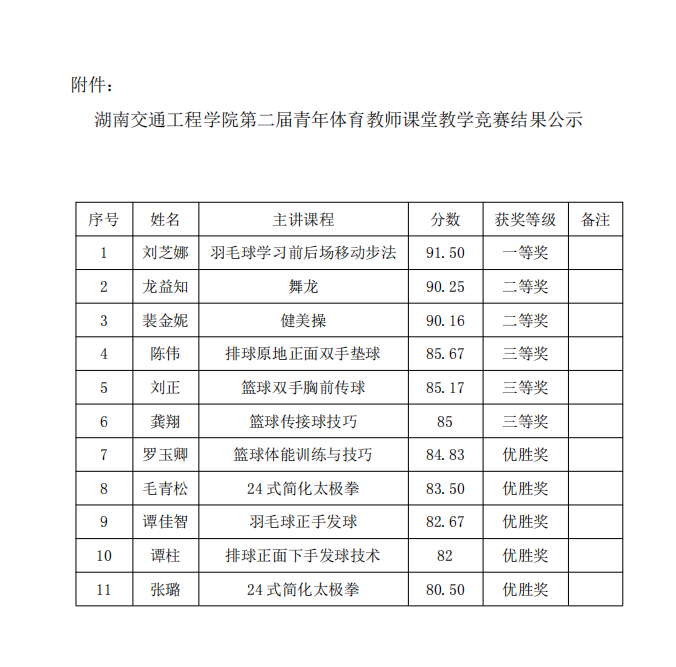 关于bevictor伟德官网第二届青年体育教师课堂教学竞赛结果的公示