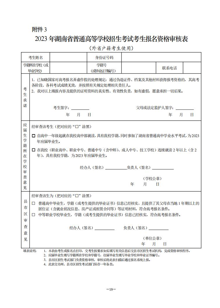 3.2023年湖南省普通高等学校招生考试考生报名资格审核表(点击下载)