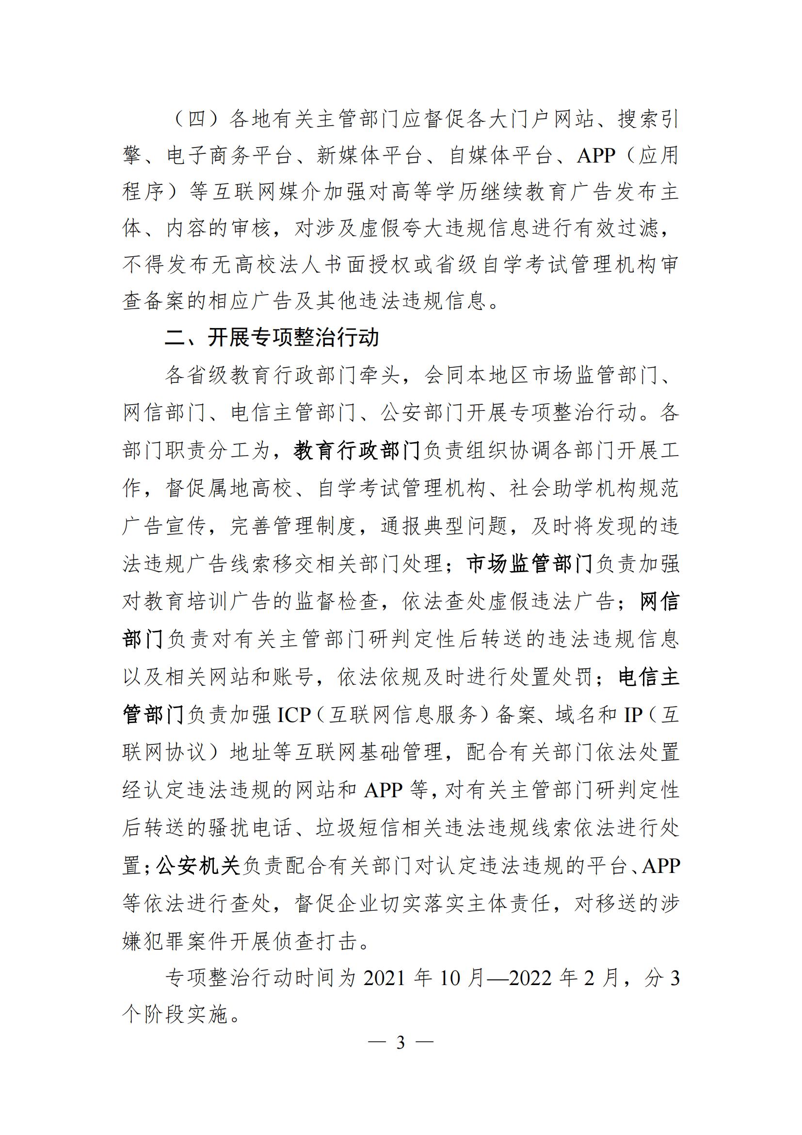 教育部办公厅等五部门关于加强高等学历继续教育广告发布管理的通知