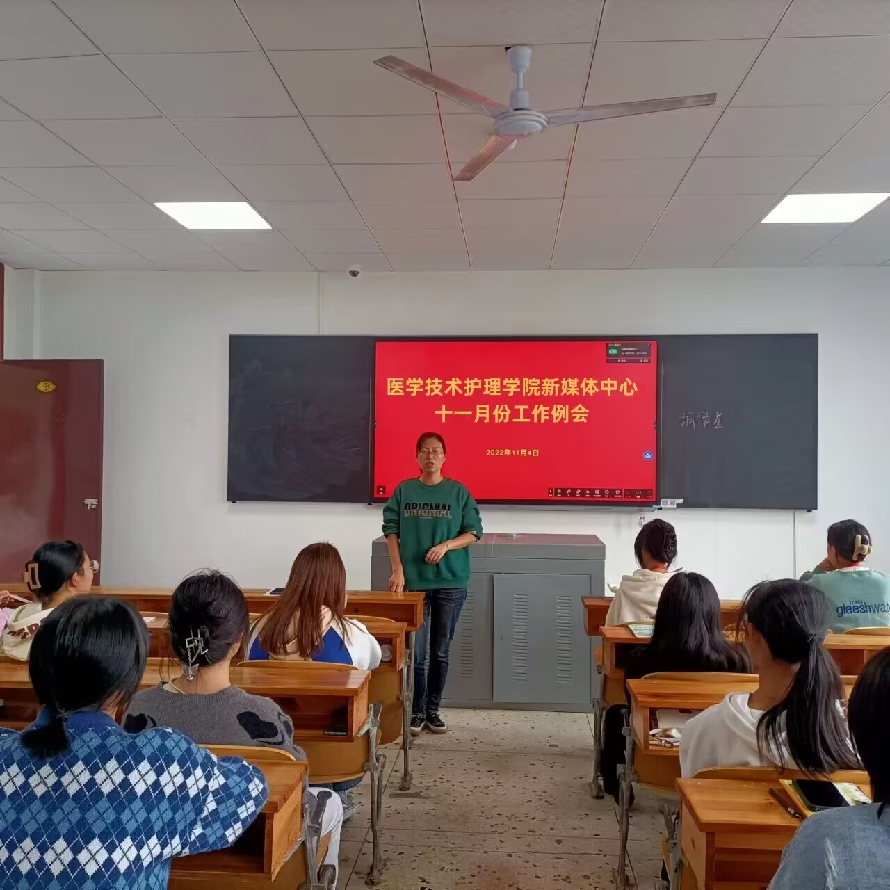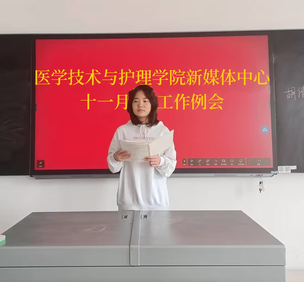 为进一步落实学院新媒体中心各项工作及推动各项宣传工作的顺利开展。114日中午,医学技术与护理学院新媒体中心于教学楼105教室召开十一月份工作例会。医护学院党总支书记邓丽,新媒体中心各负责人及在校各班级班宣传委员参加了此次例会。