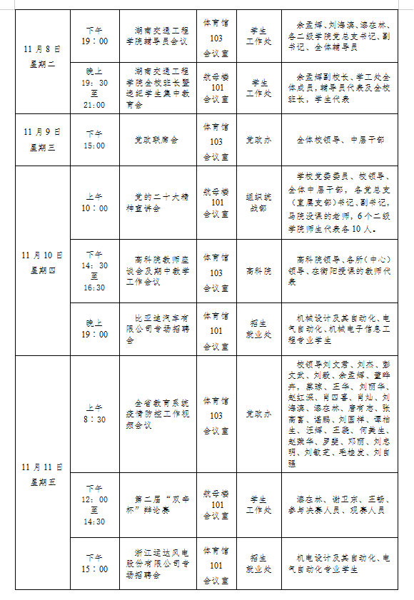 bevictor伟德官网2022-2023学年度第一学期第九周会议安排表