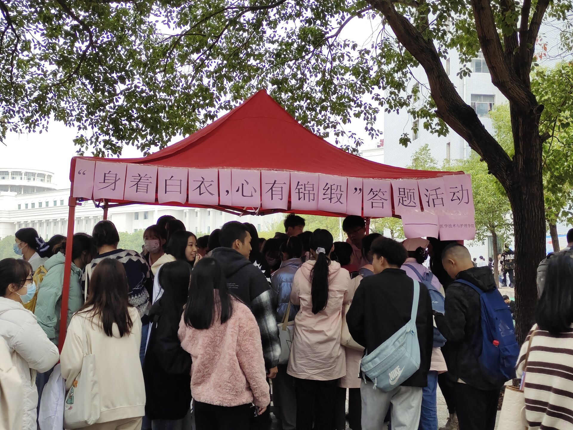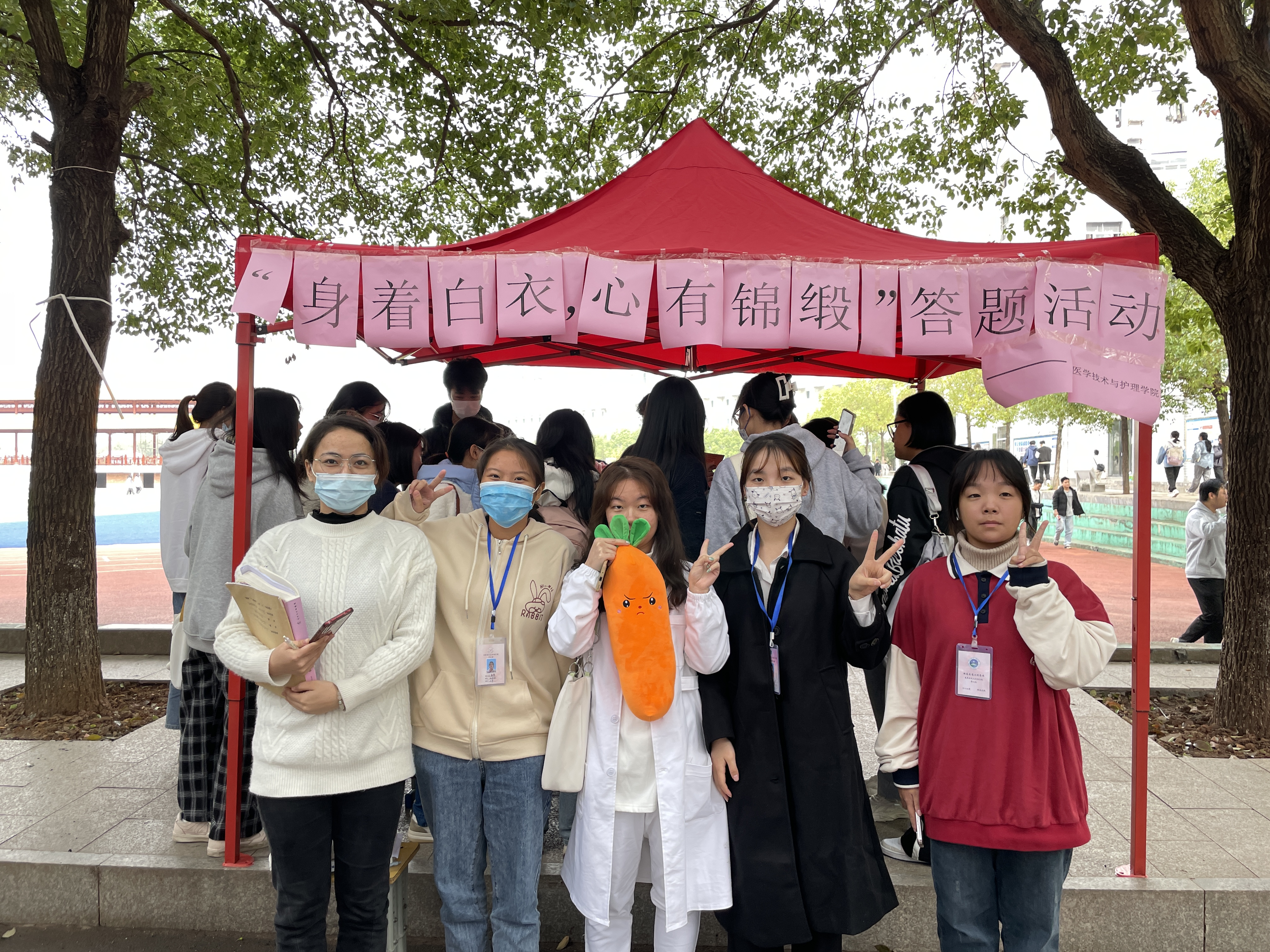为了激发同学们对学习的兴趣,医学技术与护理学院于11月24日在bevictor伟德官网足球场旁边举办“身穿白衣,心有锦缎”医学知识答题活动,其目的是提升同学们的专业知识水平,促进同学们进一步端正学习态度和生活态度,以奋发有为、开拓进取的精神投入到学习生活中,营造严谨、勤学、上进的生活氛围和学习风气。