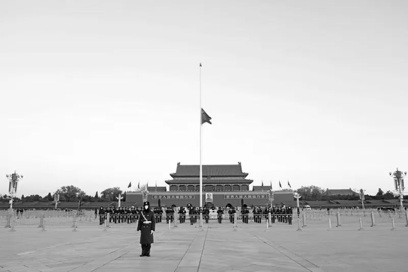 12月1日,北京天安门下半旗志哀,悼念江泽民同志逝世。