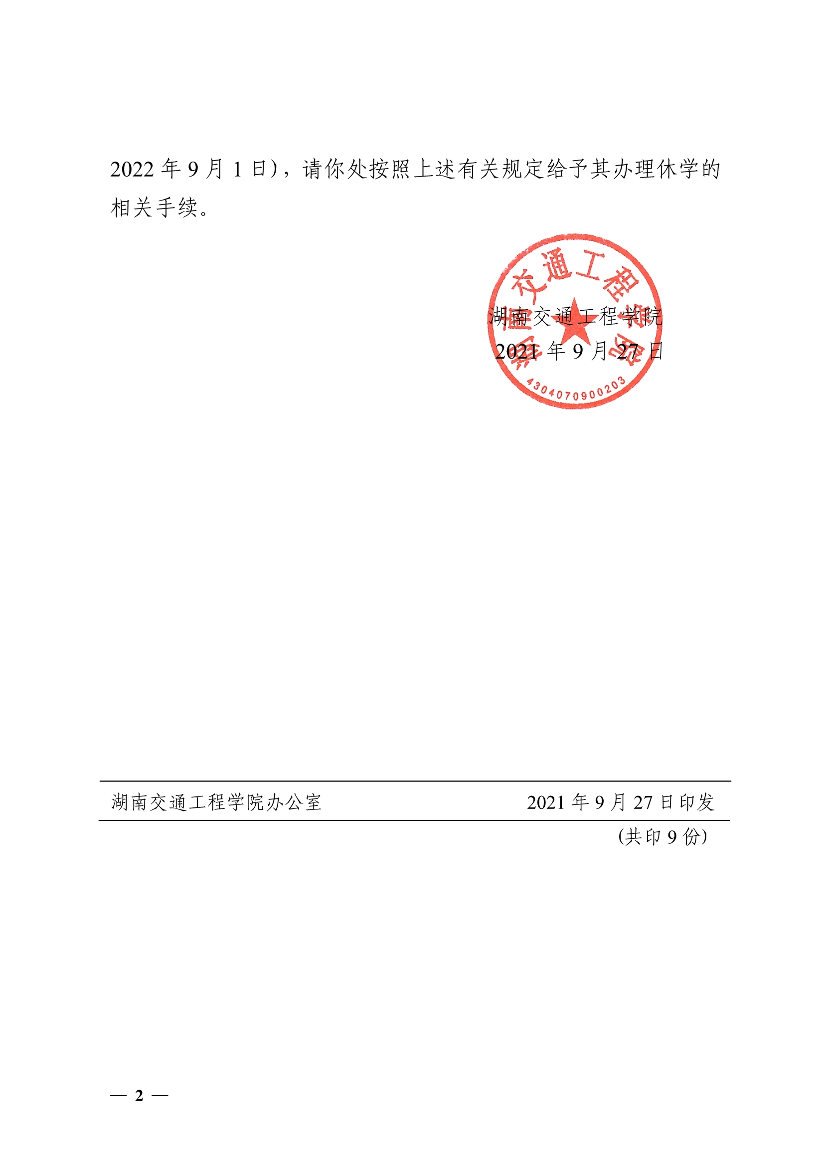 关于同意王冬等3名同学休学的决定(湘交院学管〔2021〕34号)