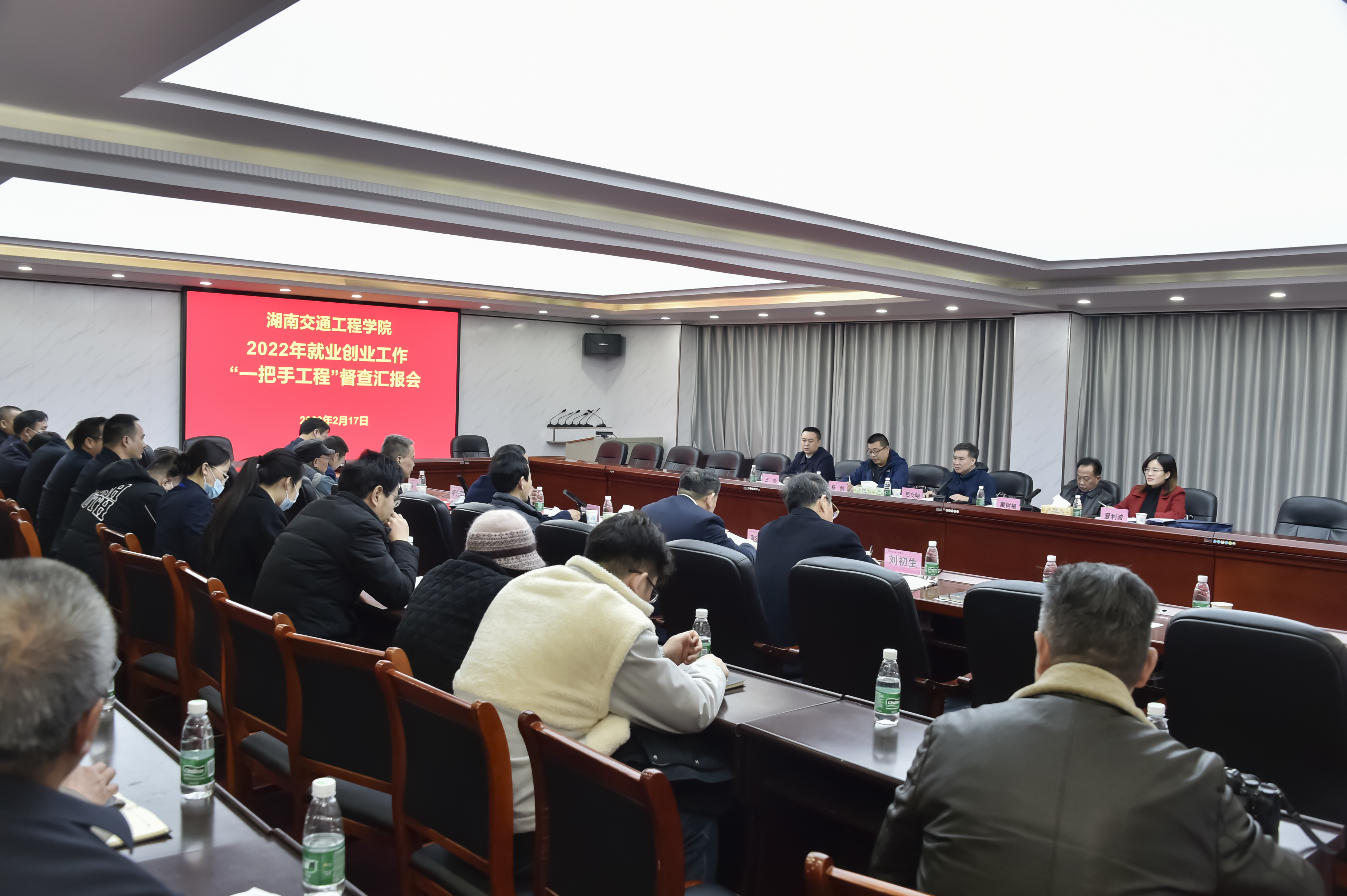本网讯(记者 赵红深  摄影 李建华  奉隆源)2月17日上午,以长沙环境保护职业技术学院党委书记吕文明任组长、湖南科技大学党政办主任戴树根任副组长,湖南外贸职业学院招生就业处处长杨剑、湖南交通职业技术学院招生就业处副处长夏利波为组员,湖南省教育厅学生处王欢为联络员的省教育厅就业创业督查组一行5人莅临bevictor伟德督查就业创业工作“一把手工程”。汇报会在学校体育馆103会议室举行,全体校领导,二级学院和相关部门负责人参加会议。