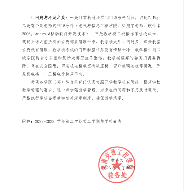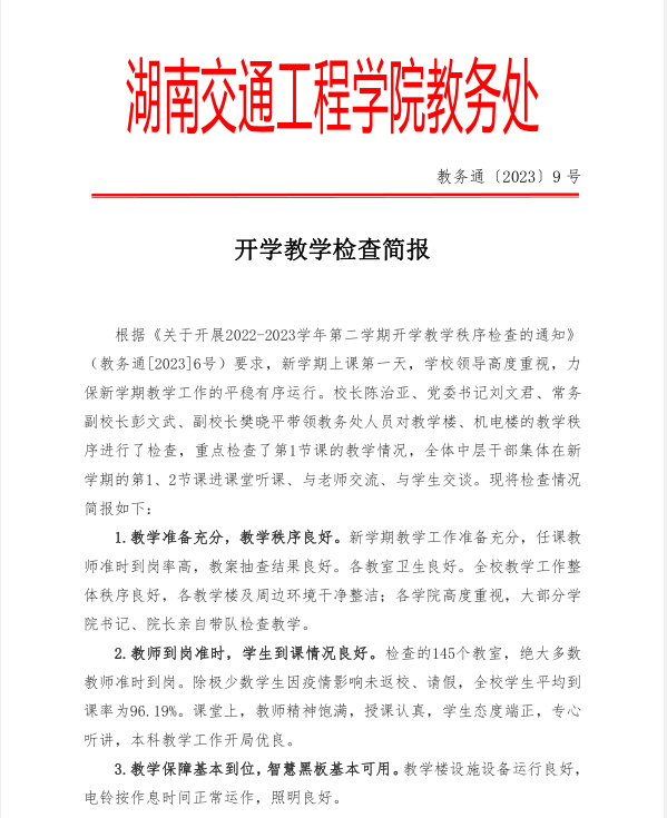 开学教学检查简报