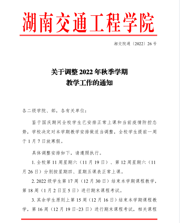 关于调整2022年秋季学期教学工作的通知