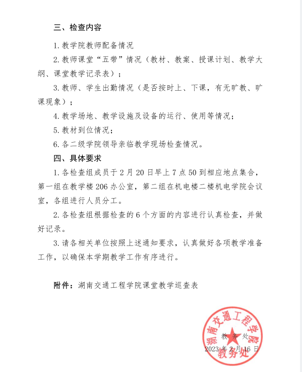 关于开展2022-2023学年第二学期开学教学秩序检查的通知