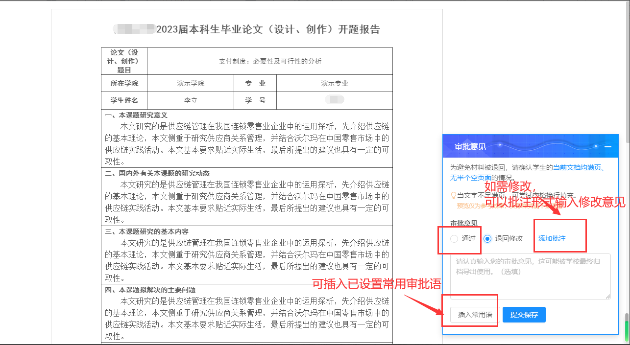 开题报告审批注意事项:可预览查看表格内容