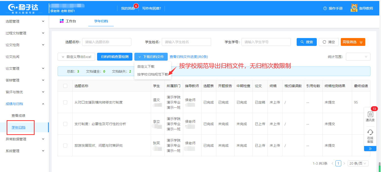 八、 学年归档